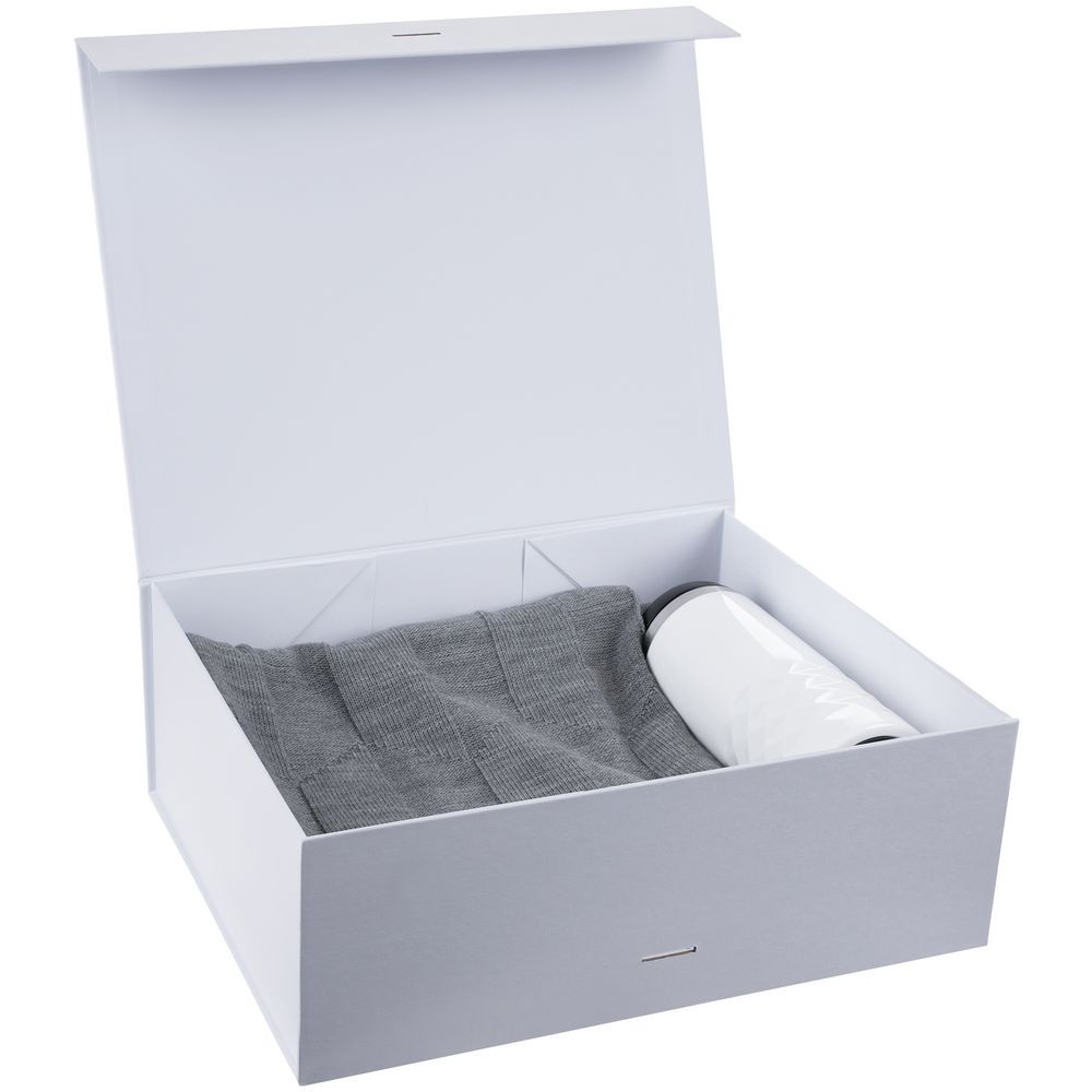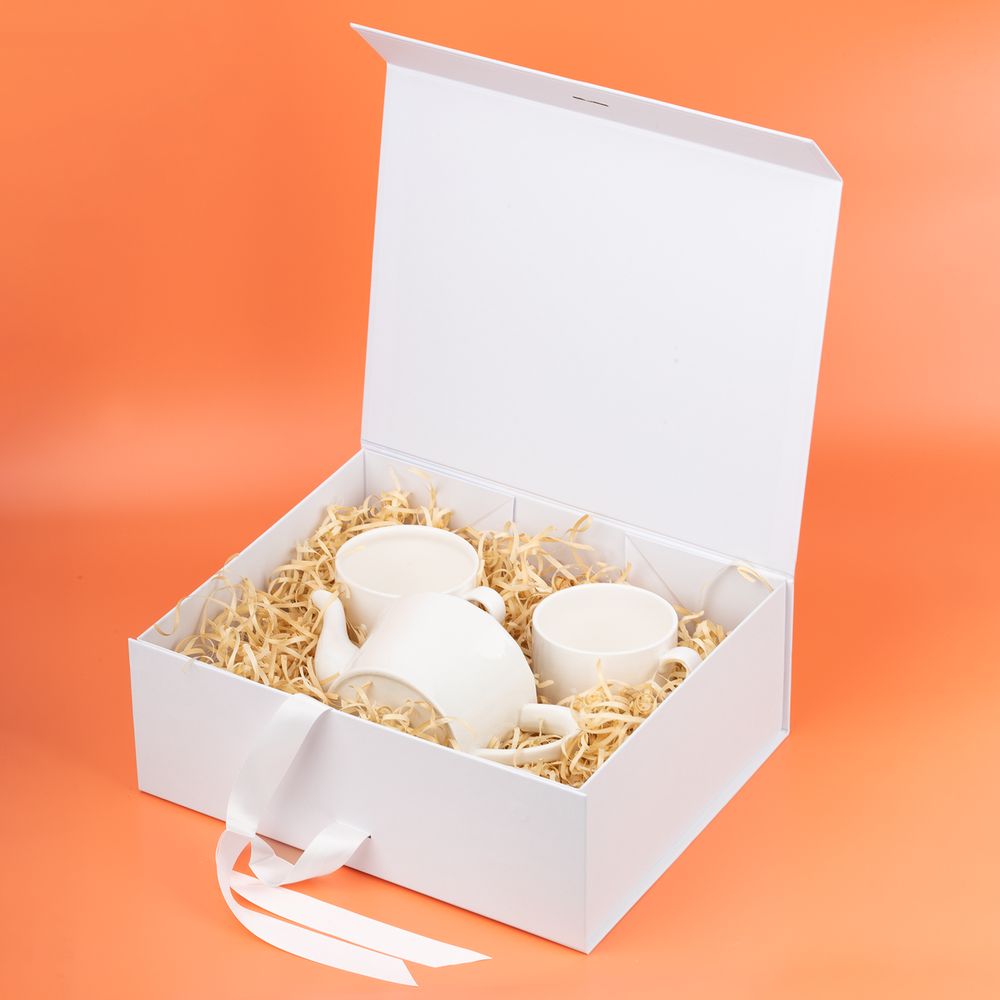 Коробка из переплетного картона, кашированного крафтовой бумагой. Крышка на двух магнитах дополнительно фиксируется лентой.Толщина картона 2 мм.