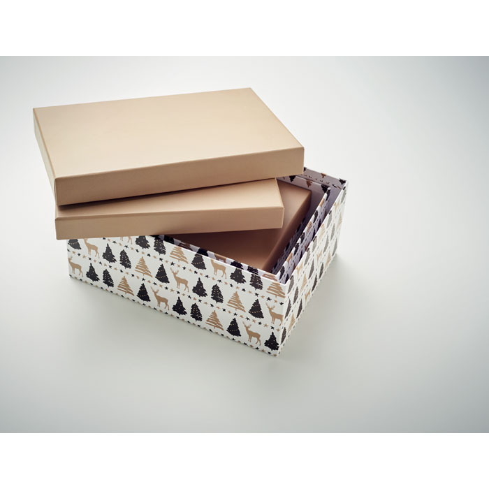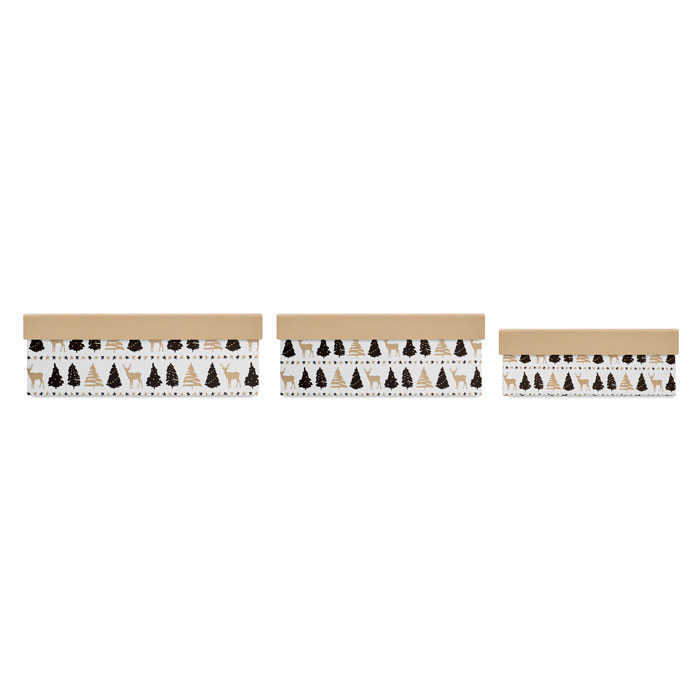 Набор из 3 рождественских подарочных картонных коробок. 128 гр. Маленький, средний и большой размер. Маленькая 17,5x12,5x6,5 см, средняя 20x14x8 см и большая: 22,5x16x9,5 см. -