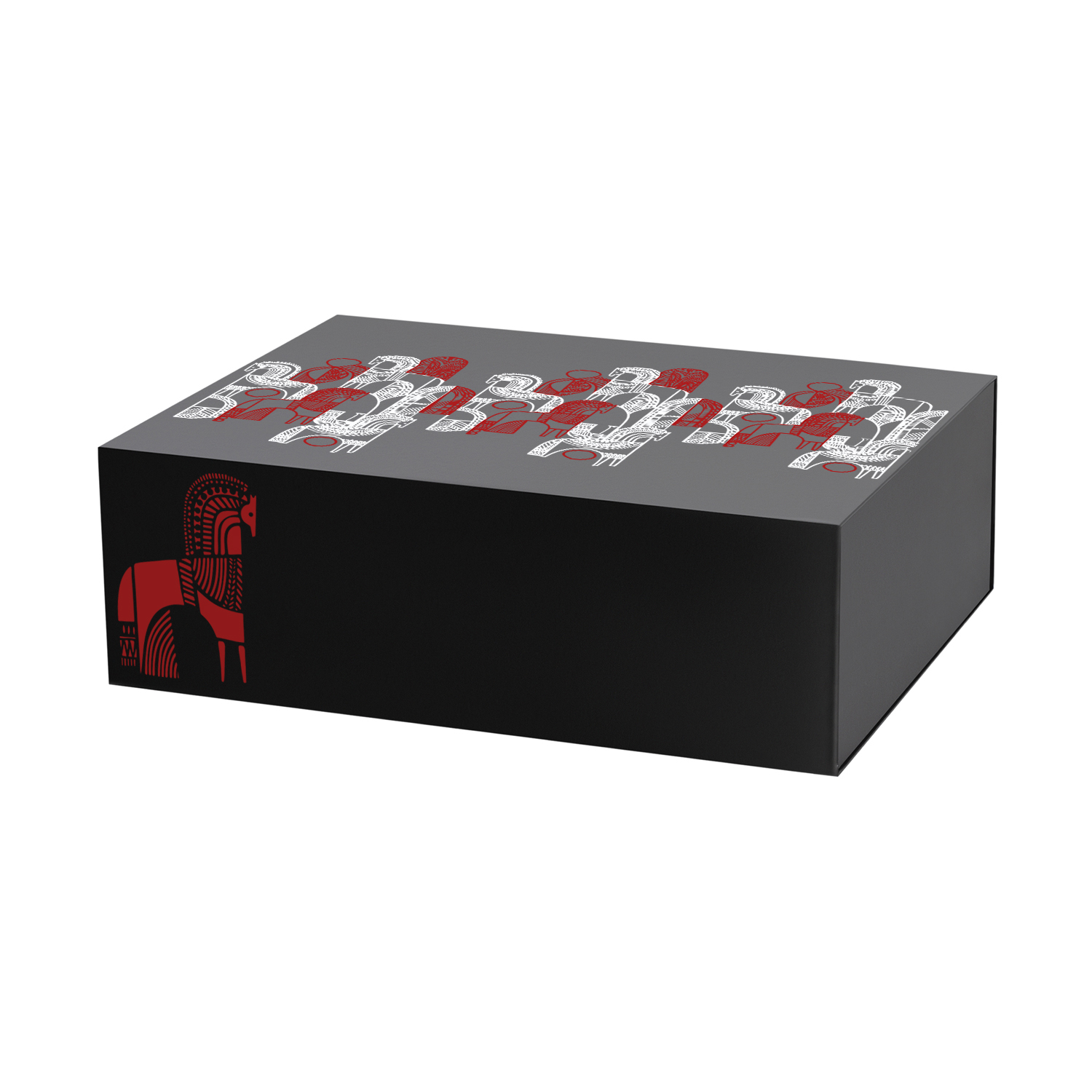 Изготовлена из жесткого переплетного картона. Матовая ламинация с покрытием «антицарапины» защищает от потертостей, сохраняя коробку безупречной даже при частом использовании, а индивидуальный пакет защищает от повреждений при транспортировке.