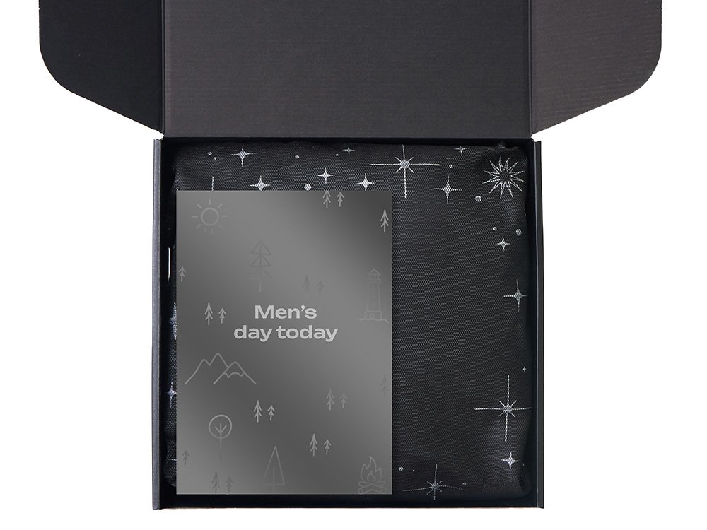 термокружка - нержавеющая сталь, пластик; кофе в дрип пакете - пластик; обложка для паспорта - полиуретан; косметичка - переработанный оксфорд; мешок - нетканый материал (спанбонд)