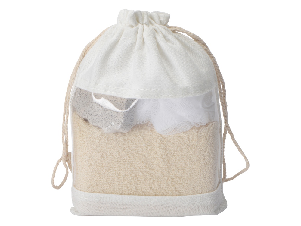 Набор для ванны состоит из мочалки, губки и пемзы, упакованных в симпатичный мешочек. Этот набор станет прекрасным подарком, который содержит необходимые для банных процедур приспособления на любой вкус: как видите, здесь предусмотрены и мочалка, и губка, что дает выбор адресату. Прозрачное окошко мешочка, на котором можно напечатать логотип, позволяет красиво преподнести содержимое и придает набору нарядный внешний вид. -