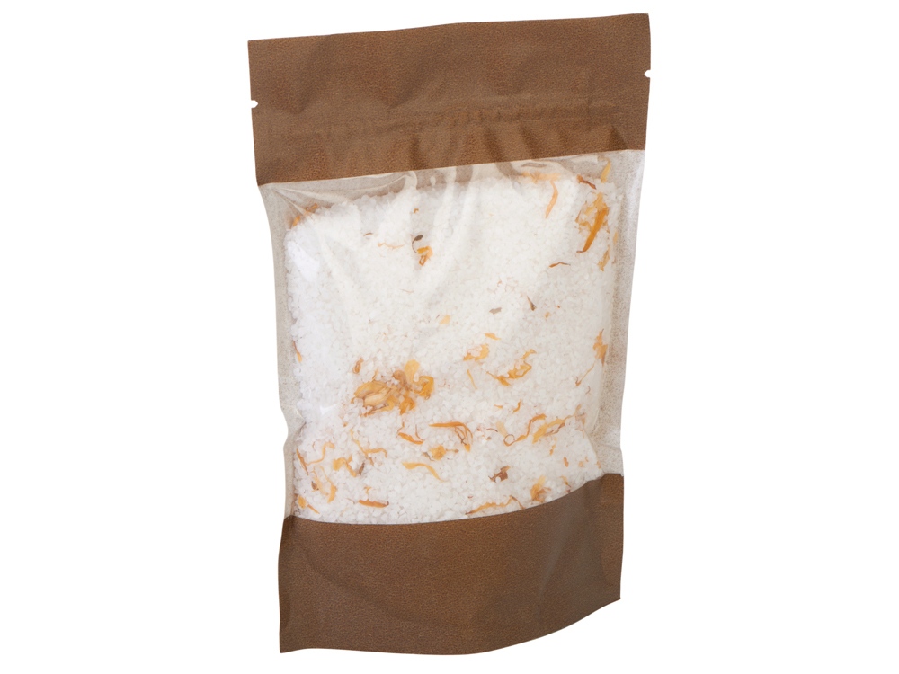 - Соль для ванны: натуральная морская соль, смешанная с календулой обогащена минералами, она поможет снять напряжение и усталость, расслабить мышцы и улучшить кровообращение. Соль также способствует выведению токсинов из организма и укреплению иммунной системы.