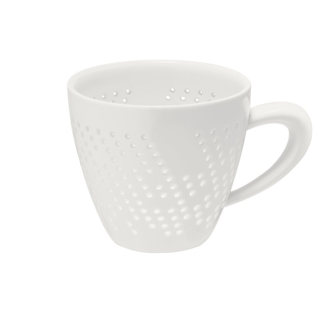 Чашка Coralli Rio — легкая, словно светящаяся изнутри посуда с легендарным узором «рисовое зерно». Благодаря тонкому слою прозрачной глазури кружка выглядит кружевной и ажурной, при этом напиток гарантированно остается внутри.