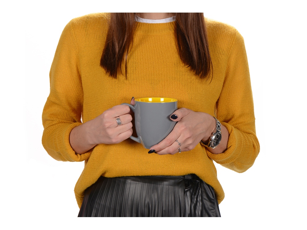 Кружка выполнена из достаточно легкой и тонкой керамики, её удобно держать в руке за счет большой ручки. Большой объём позволит наслаждаться любимым напитком в течение долгого времени.