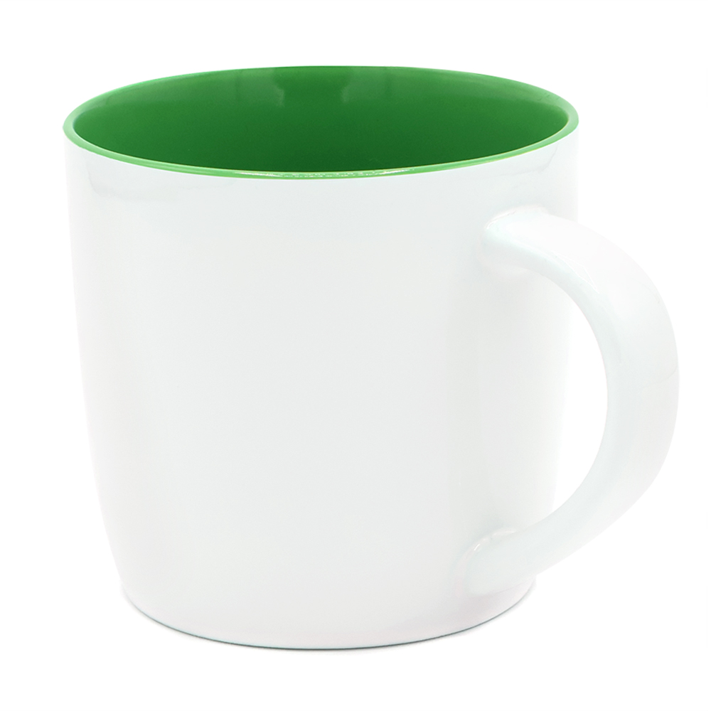 Ищете стильный промо-сувенир? Двухцветная керамическая кружка в объеме 350 мл - отличный подарок. Белая глянцевая поверхность снаружи и яркая цветная внутри - эта кружка создаст прекрасное праздничное настроение. Цвет по PANTONE® (максимально приближен): 355C- Виды нанесений: УФ-печать А2, Тампопечать большая, Деколь, УФ - DTF, УФ-Лак, УФ-Цвет+Лак