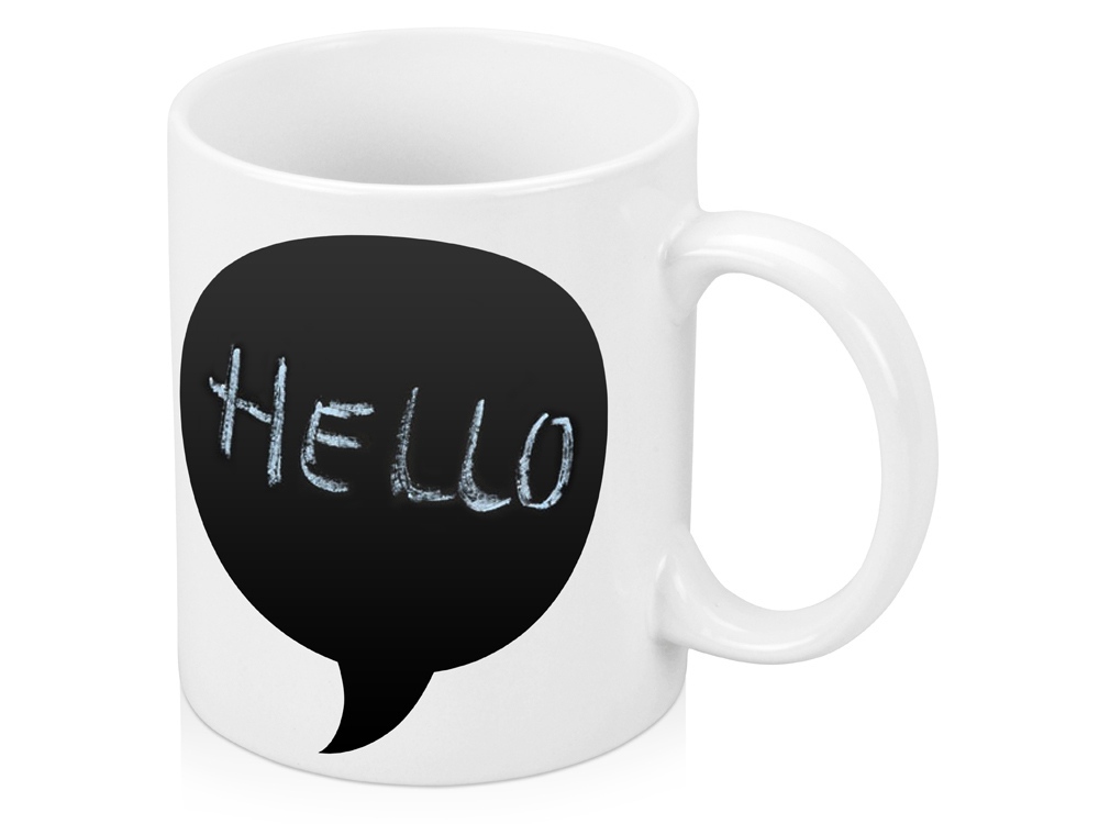 Белая керамическая кружка Tiza с оригинальной выноской - этот полезный сувенир подойдет для креативных людей, которые любят высказывать и визуализировать свои мысли. На белую часть кружки нанести можно все что угодно: любую фразу, логотип или изображение. А в выноске можно писать и рисовать мелками (в комплект не входят). Передавайте эмоции и рассказывайте свои истории с помощью кружки Tiza! -