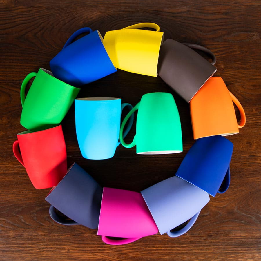 Фарфоровая кружка SWEET с мягким и тактильно приятным прорезиненным софт покрытием давно и прочно завоевала место на рынке бизнес-подарков. Секрет ее успеха – в популярной универсальной форме и очень широком ассортименте цветов в линейке.  А с гравировкой она смотрится просто великолепно – когда снимается верхний слой покрытия, лого выглядит ярко и объемно. Настоящее волшебство! Большая площадь поверхности позволяет нанести любую надпись, пожелание или цитату, так что не ограничивайтесь деловыми стандартами. Pantone 109C  Не рекомендуется мыть в посудомоечной машине.** Перед оформлением заказа рекомендуем ознакомиться с образцом ввиду особенностей прорезиненного покрытия, связанных с производством.