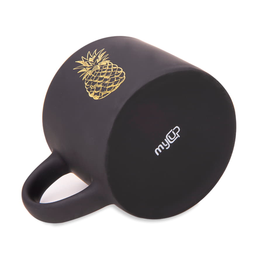 Кружка трендовой цилиндрической формы с черным прорезиненным покрытием.При гравировке подложка вскрывается в цвет внутренней части кружкиЦвет внутренней части близкий к Pantone 122CНе рекомендуется мыть в посудомоечной машине -
