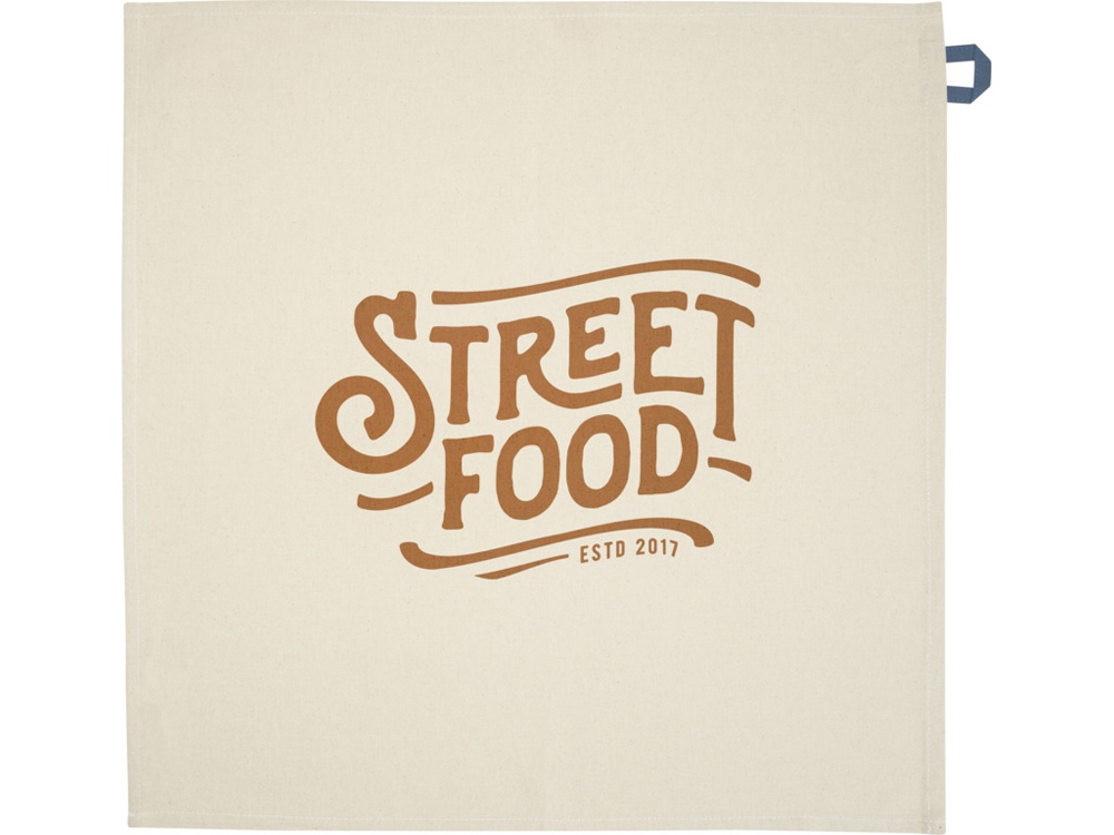 Кухонное полотенце изготовлено из 100% переработанного хлопка плотностью 200 г/м², сертифицированного GRS, с характерной контрастной петлей. Размер полотенца: 50 x 50 см. 101% GRS certified recycled cotton, 210 g/m2. -