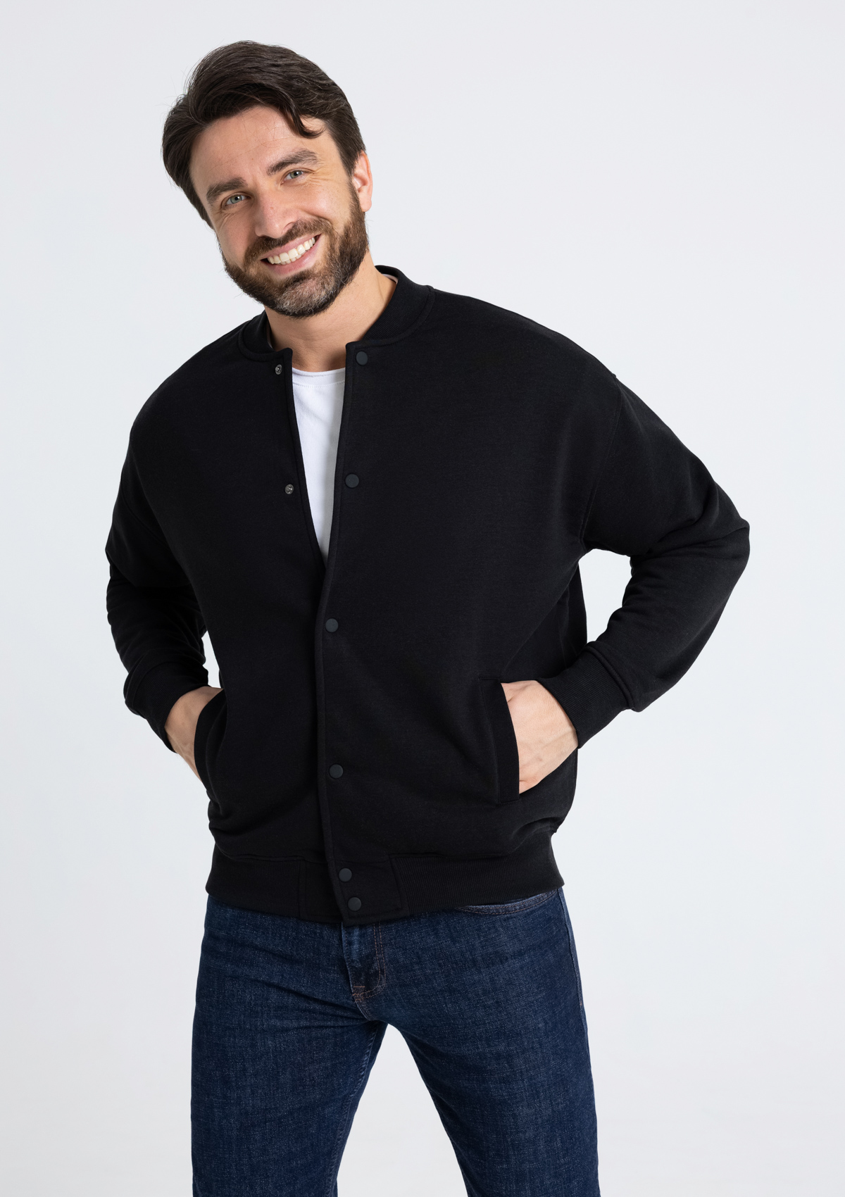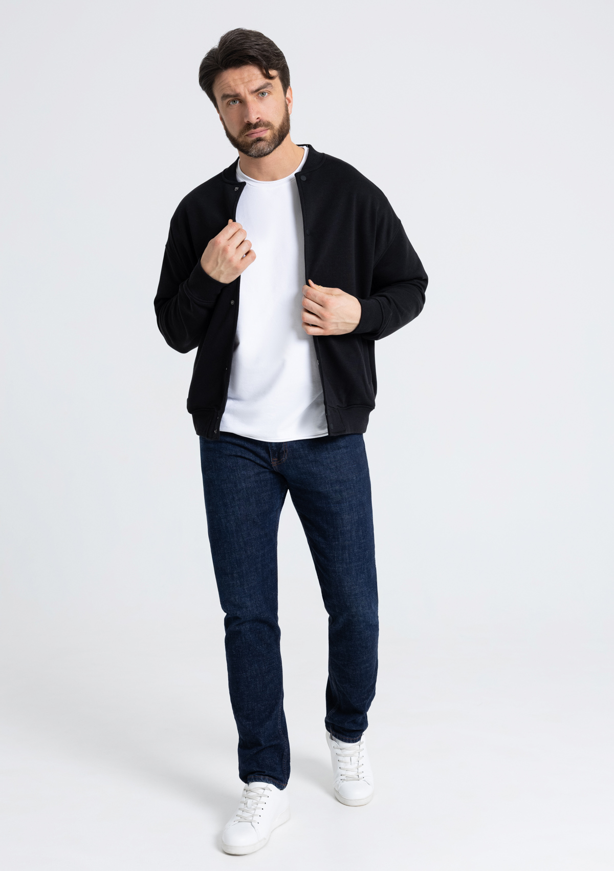 Бомбер выполнен из плотного и приятного к телу материала – футер 3-х нитка (70% хлопок, 30% эластан). Дышащий материал хорошо отводит влагу, сохраняя комфортный микроклимат внутри изделия. Благодаря тройной нити полотно отличается высокой прочностью, что делает его и устойчивым к механическим повреждениям.