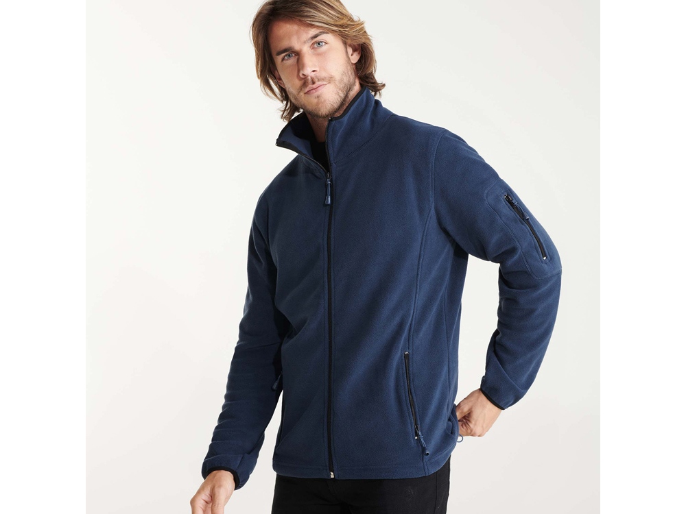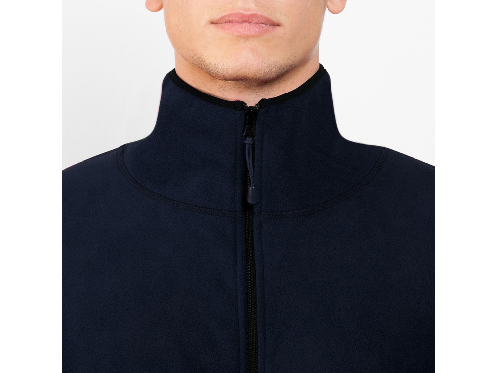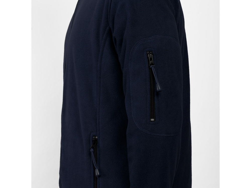 Куртка из микрофлиса с высоким воротом. Контрастная центральная молния, боковые карманы на молнии, декоративная молния на левом рукаве, отделка резинкой по краю рукавов. Налокотники из основного материала. -