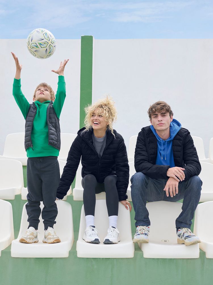 верх и подкладка - переработанный полиэстер, 100%; плотность 280Т, таффета; утеплитель - полиэстер 100%, полиэфирный пух