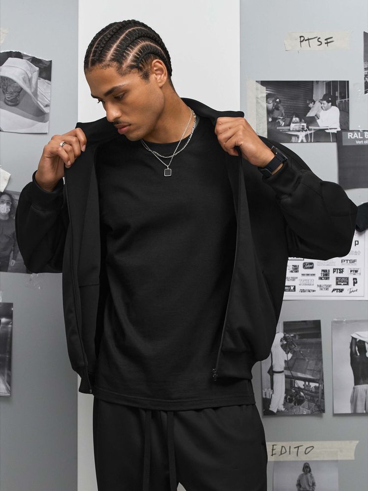 Спортивная куртка в стиле кежуал со свободной посадкой. Выполнена из технологичного трехслойного материала, известного как ткань скуба или трикотажный неопрен, в самом центре которого спрятаны объемные нити текстурированного полиэстера.