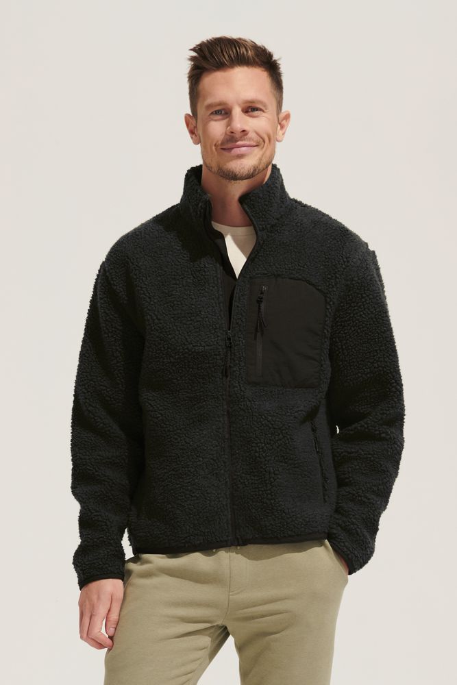 Куртка унисекс из фактурной искусственной шерпы с гладкой отделкой из таслана.- Воротник-стойка