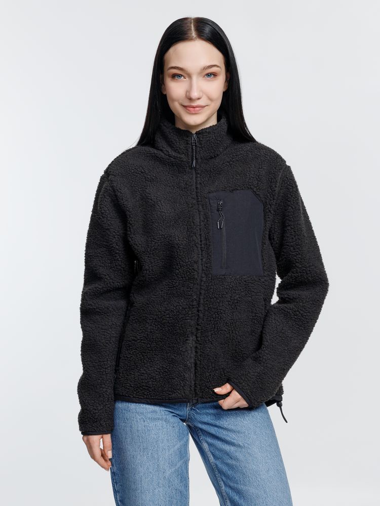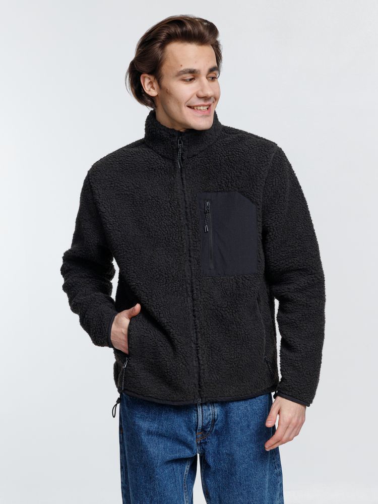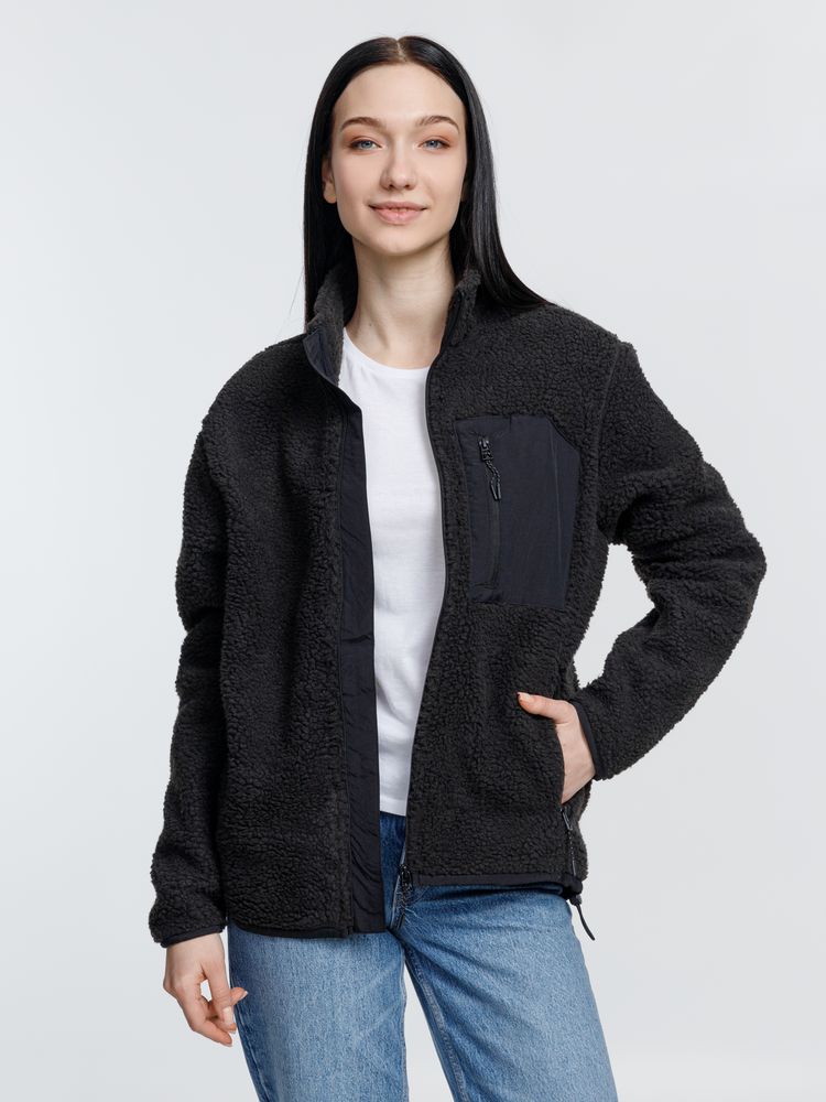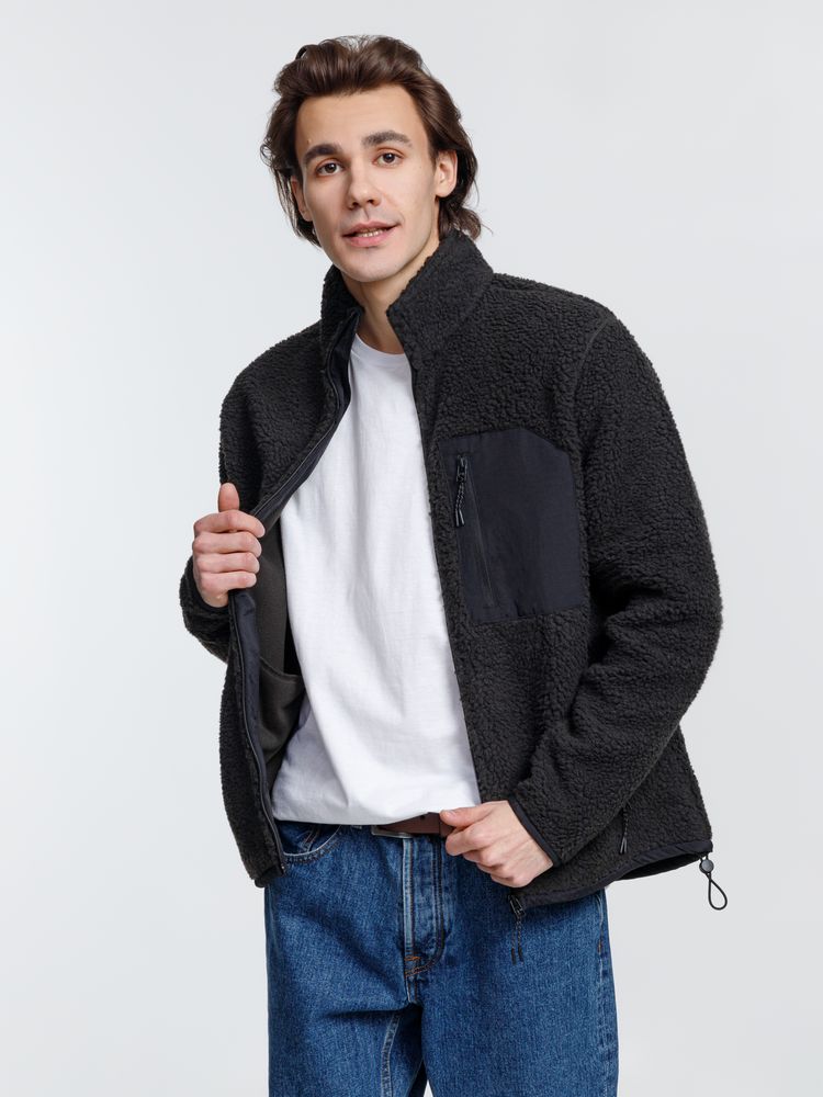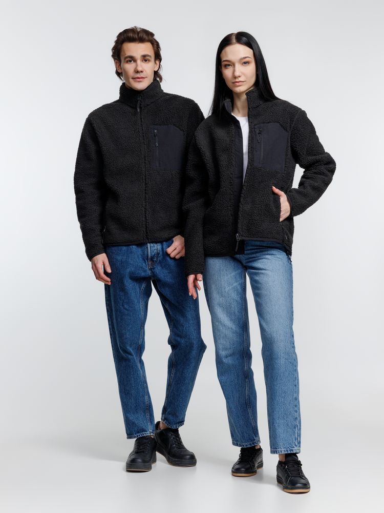 Куртка унисекс из фактурной искусственной шерпы с гладкой отделкой из таслана.- Воротник-стойка
