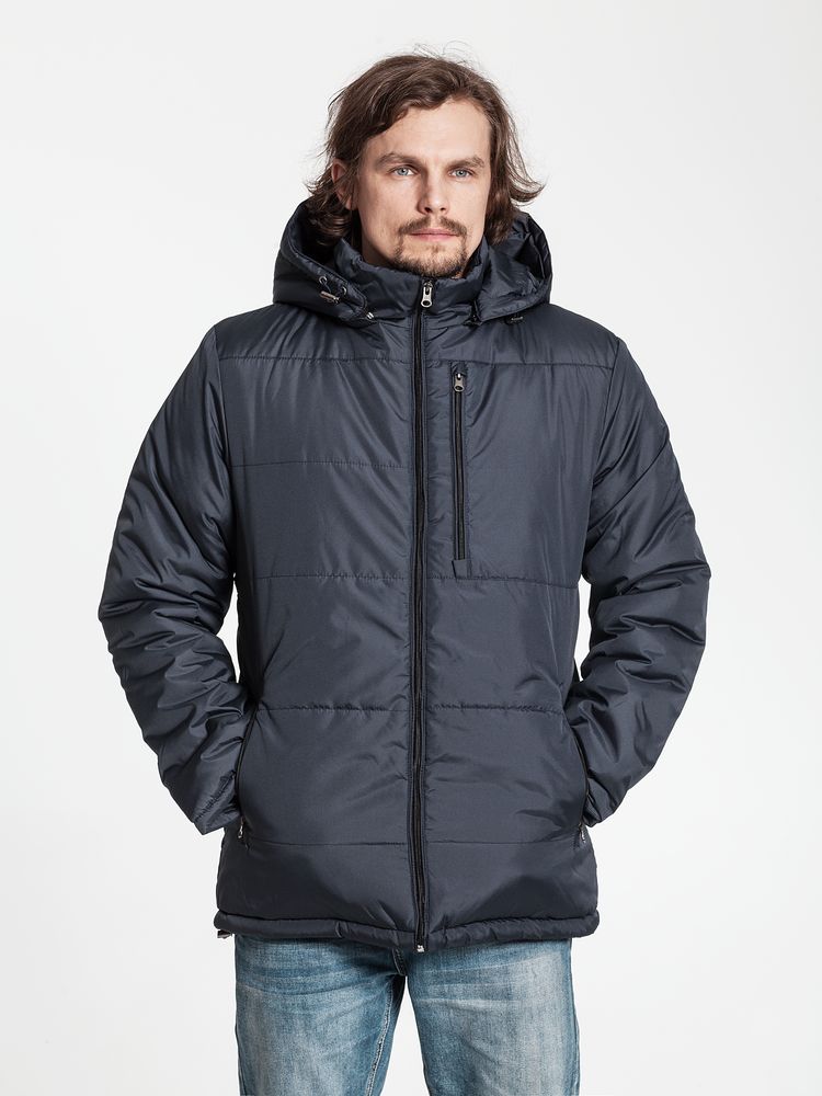 Утепленная куртка на молнии с отстегивающимся капюшоном.- Два боковых и один нагрудный карман на молнии