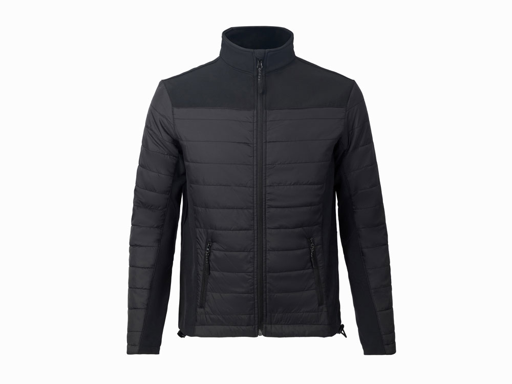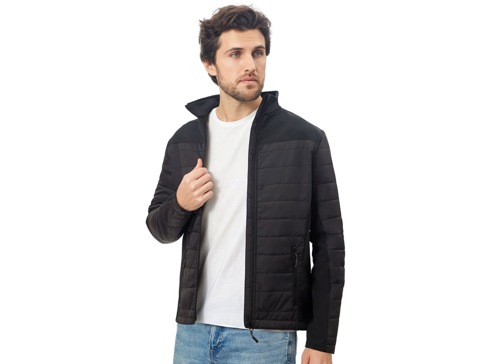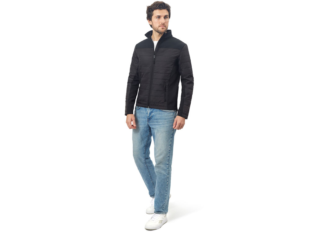 - гибридная конструкция из 2 видов материалов – софтшелл гарантирует ветронепроницаемость и легкость, а стеганные вставки добавляют утепления.