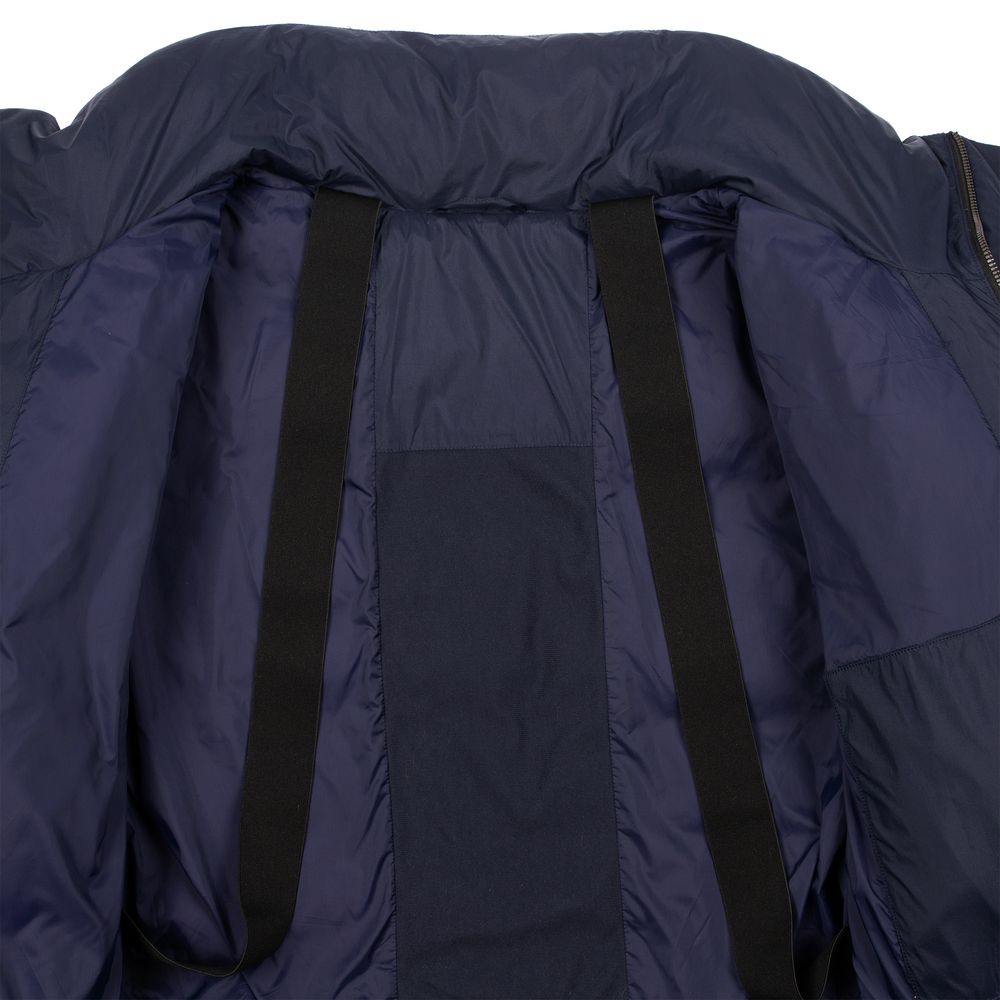При перепаде температур, например, попадании в теплое помещение с улицы, можно просто накинуть пуховик за спину, как рюкзак, — на лямки с внутренней стороны спинки.