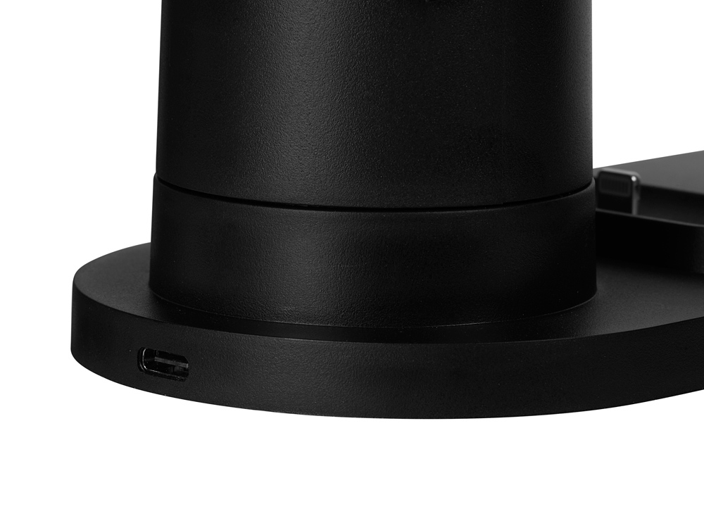 Настольная зарядная станция с лампой для трёх устройств - смартфона с поддержкой беспроводной зарядки, часов Apple и наушников Apple (разъем Lightning). Регулируемый уровень яркости (диммер). Лампу можно вращать вокруг своей оси. Для удобства транспортировки лампу можно отсоединить.