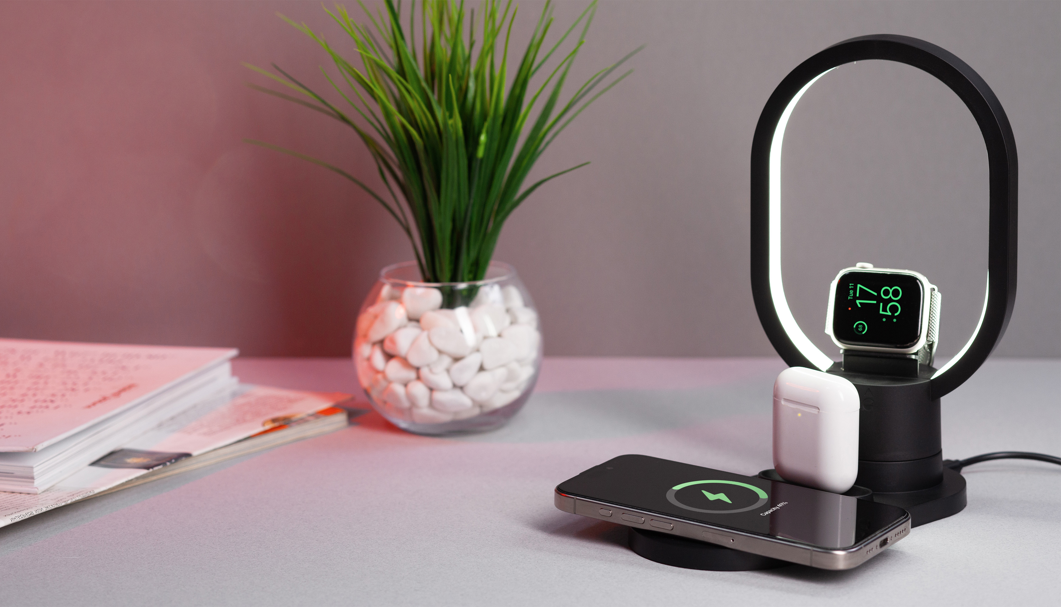Настольная беспроводная (15W) зарядная станция "Starship" с лампой