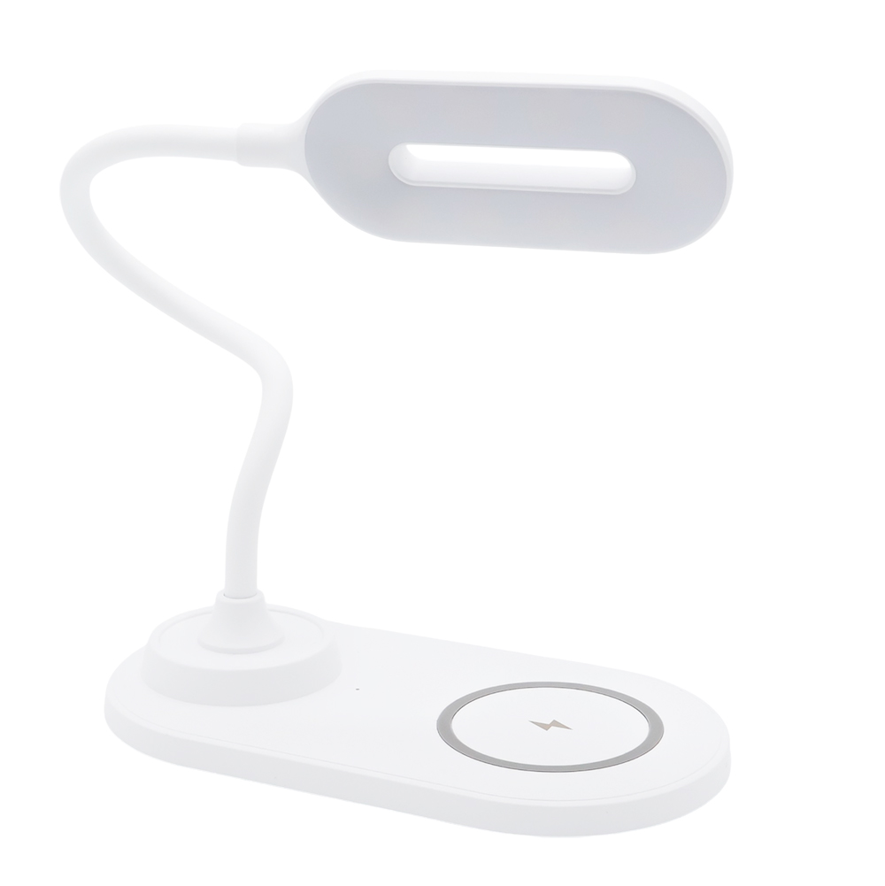 Настольная лампа с беспроводной зарядкой. Совместимость – все мобильные телефоны с поддержкой Qi. Входной сигнал 5V-2A/9V-1.67A. Напряжение 5 Вт/7,5 Вт/10 Вт. Рабочая частота 110-205 кГц. В комплекте кабель USB и инструкция. Область зарядки смартфона поддерживает все Android/Ios устройства с функцией беспроводной зарядки. Для работы беспроводной зарядки необходимо подключать устройство к сети через адаптер.- Виды нанесений: Тампопечать большая, УФ - DTF