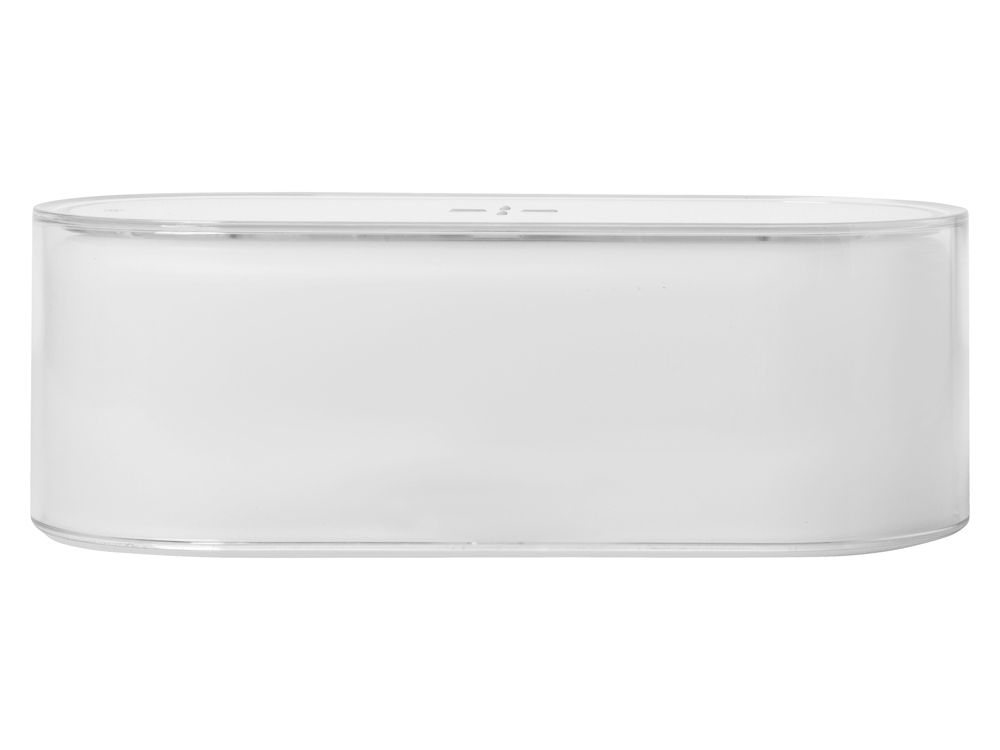 Ночник с RGB-подсветкой из 7 переливающихся цветов. Также есть режимы стандартного и яркого освещения теплым светом. Ночник выполняет функцию зарядной станции для устройств, поддерживающих беспроводную зарядку стандарта Qi мощностью 15 Вт*. Функция ночника работает без подключения к сети благодаря встроенному аккумулятору на 400 мАч. Функция беспроводной зарядки работает только при питании от сети. Устройство можно брендировать методом УФ-печати, тампопечати, а также цифровой печати.