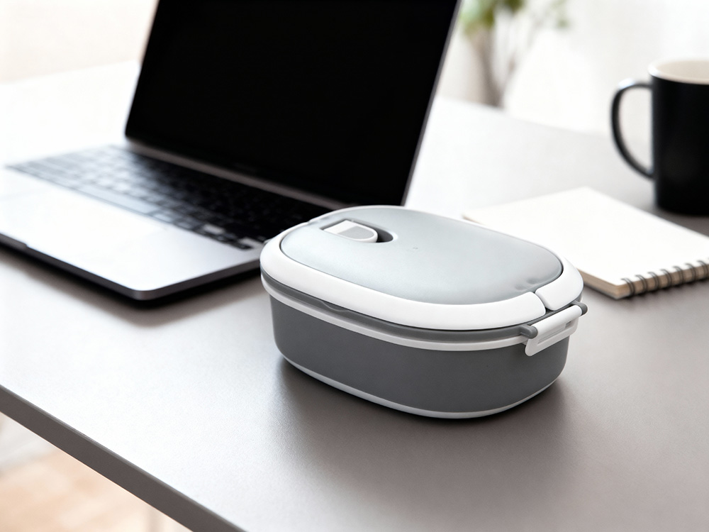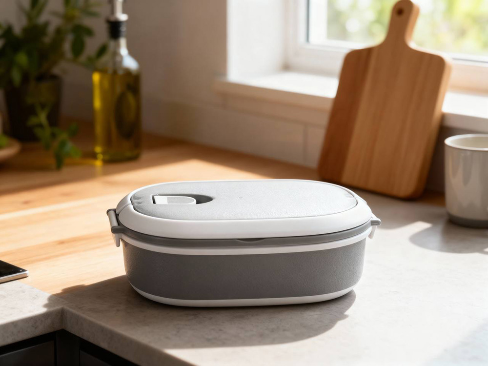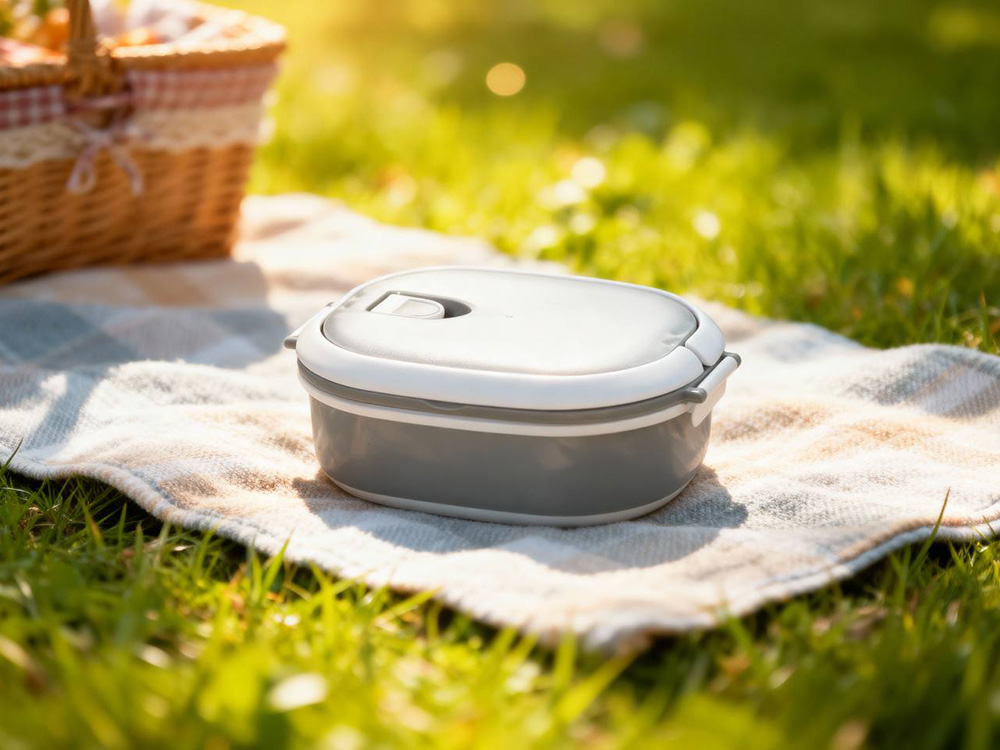 Материалы — пластик и термопластичная резина, безопасные для контакта с пищей и рассчитанные на длительное использование. Ланч-бокс плотно закрывается, что помогает избежать проливаний, однако не является полностью герметичным — идеально для твёрдых и густых блюд.