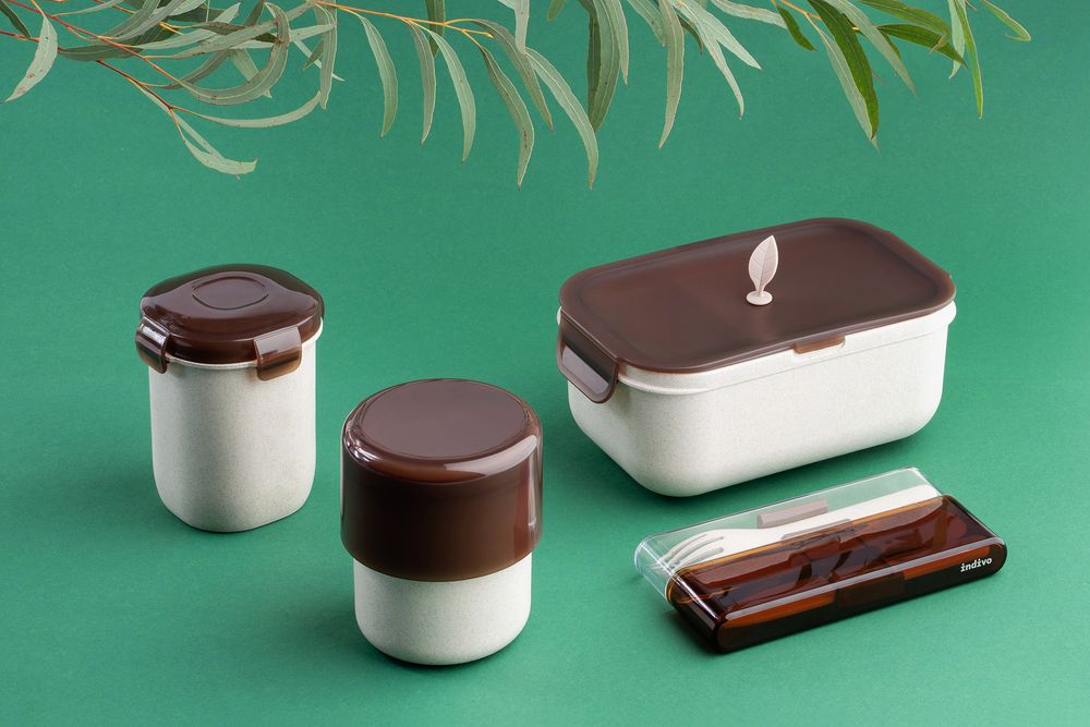 Контейнеры и столовые приборы greenMeal изготовлены из композитного материала с добавлением шелухи рисового зерна, что сокращает потребление синтетических полимеров.