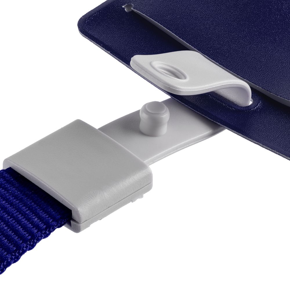 Карман для пропуска крепится к ленте с помощью пластиковой клипсы. -