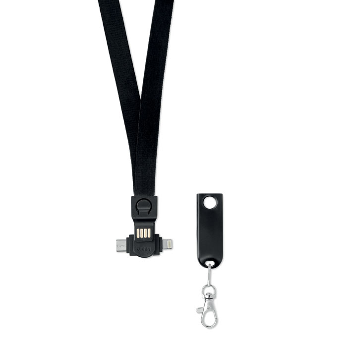Ланьярд из полиэстера с зарядным кабелем с USB-A на Micro-B (2 в 1 контакт) и типом C. Включает защитный ключ и держатель бейджа. -