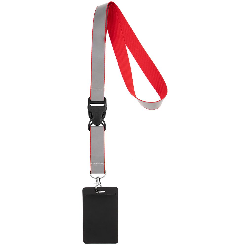 Лента для бейджа или пропуска с карабином и межъярусным замком. Такой замок позволит быстро отстегнуть часть ленты, чтобы приложить интерактивный бейдж или пропуск к считывателю, не снимая ленту через голову.