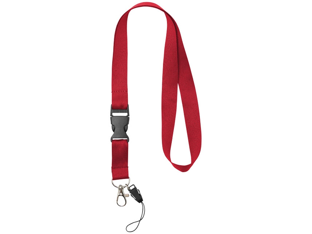 Многофункциональный шнурок с отстегивающейся пряжкой, овальным крючком с зажимом и держателем для телефона. Идеально подходит для бейджа, удостоверения личности или ключей. Предлагается широкий выбор цветов с большим участком для нанесения логотипа. Полиэстер. -
