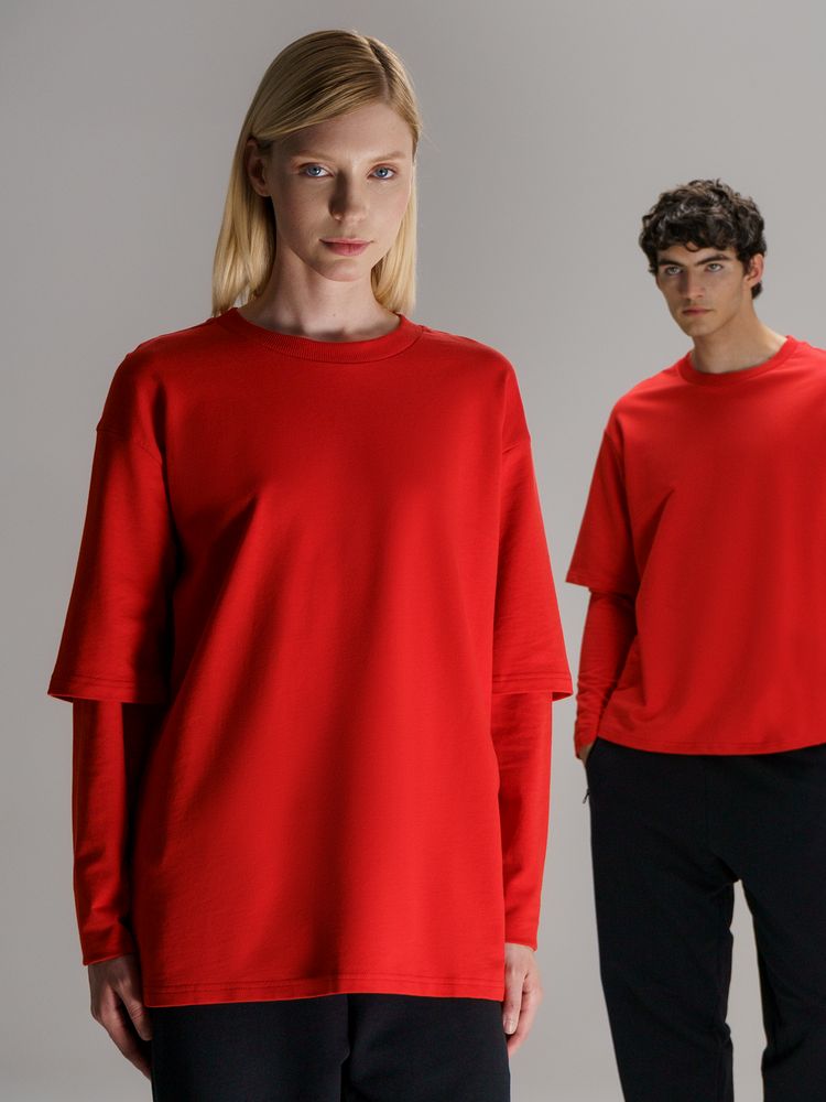 Футболка оверсайз с двойным рукавом Kosmos, красная