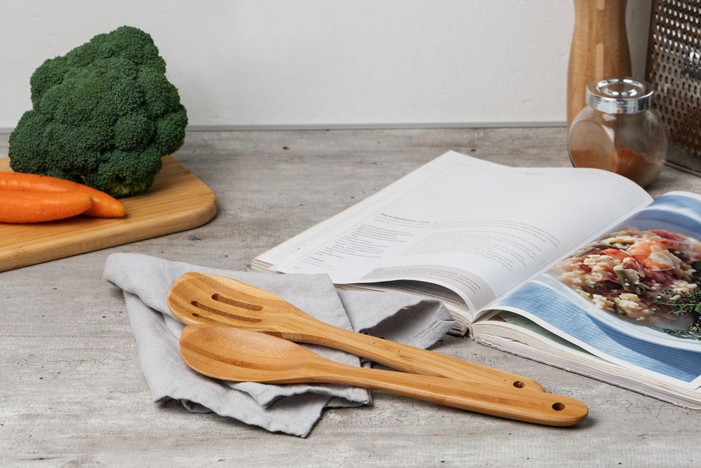 Набор лопаток — это отличный выбор для любителей готовить. Лопатки изготовлены из бамбука. Не впитывают запахи и устойчивы к повреждениям, так что прослужат долго и будут радовать глаз.