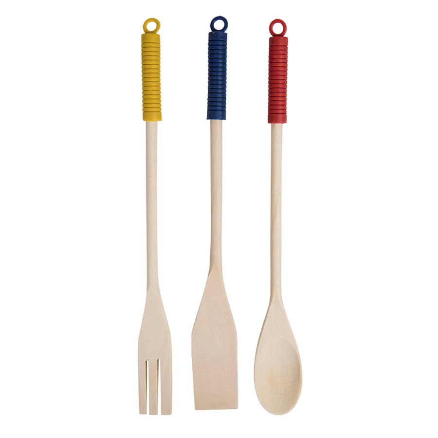 Набор деревянных лопаток KUSINA из клена станет незаменимым помощником на кухне. Посуда с антипригарным покрытием чувствительна к металлическим аксессуарам, тогда как мягкое дерево нежно и аккуратно взаимодействует с поверхностью. Лопатки помогут перевернуть стейк, поправить кекс в форме и сделать много других полезных вещей. Цветные силиконовые наконечники с ребристой поверхностью и удобной петлей позволяют ручкам не скользить в ладони на жаркой кухне. Использование деревянных лопаток имеет целый ряд преимуществ: • исключается вероятность получить ожог: у дерева низкая проводимость тепла, и в отличие от металла оно не нагревается; • они не царапают посуду, ведь дерево податливый и мягкий материал, что дает возможность использовать его для готовки в кастрюлях и сковородках с антипригарным и тефлоновым покрытием; • в отличие от пластика и прочих материалов, натуральный массив не выделяет токсинов и не влияет на вкус блюд. Отличный авторский сет из удобных предметов для кулинарных открытий и экспериментов! -