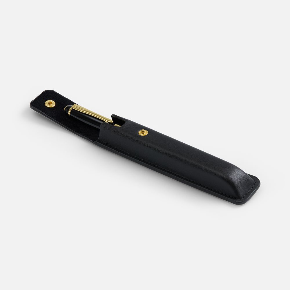 Футляр изготовлен из искусственной кожи, застегивается на кнопку.- Механизм ручки: колпачок