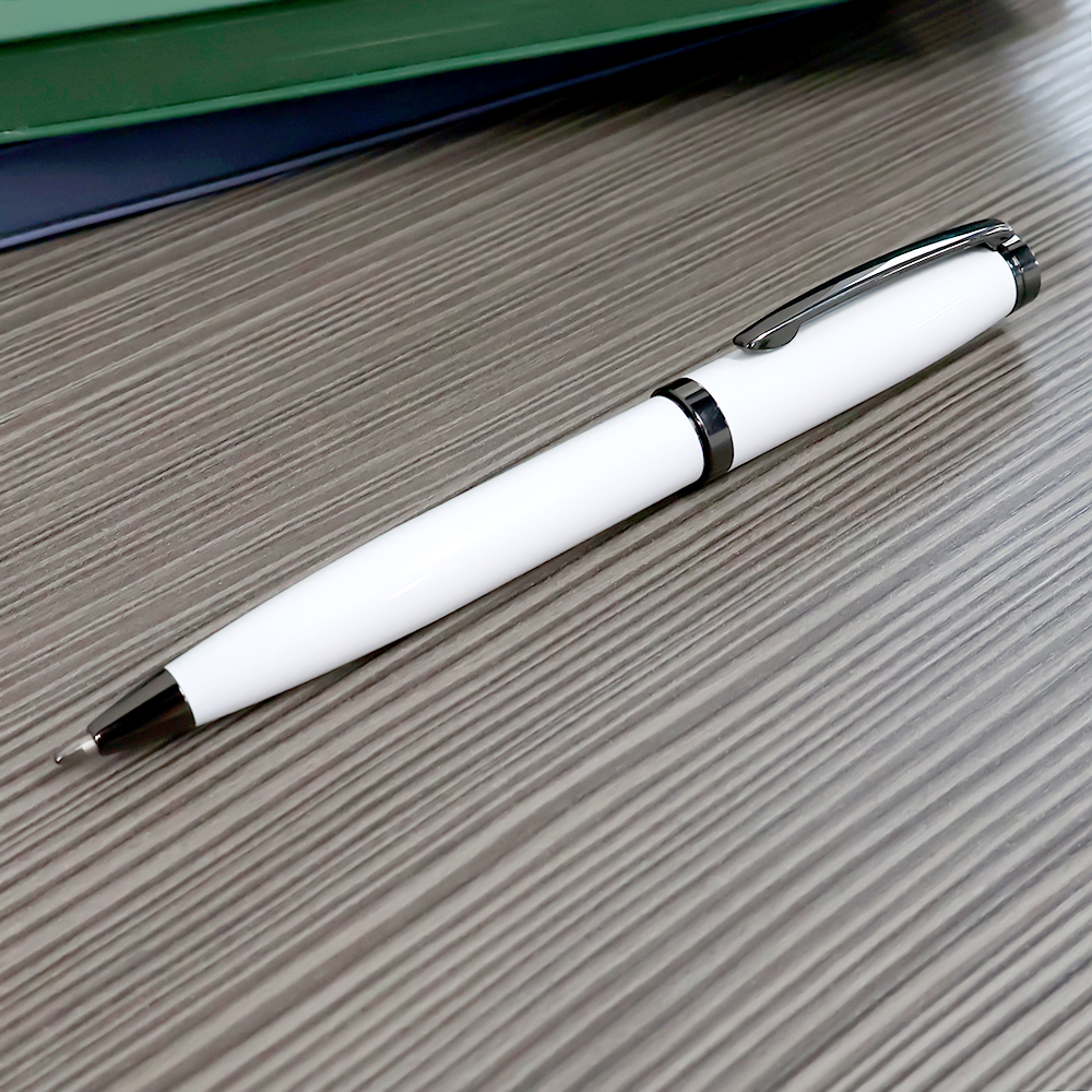 Наша Бетти — подарок для любителей более увесистых и солидных форм. Общий вес ручки — 33 грамма! У нашей красотки поворотный механизм, покрытый глянцем корпус из нержавеющей стали, стержень Паркер 0,7 мм с синими чернилами. Элементы ручки: клип, кольцо и дюбка покрыты ган-метал краской. Ручку приятно держать в руке и демонстрировать публике.- Виды нанесений: Гравировка-А1 (оптоволоконный лазер), УФ-печать