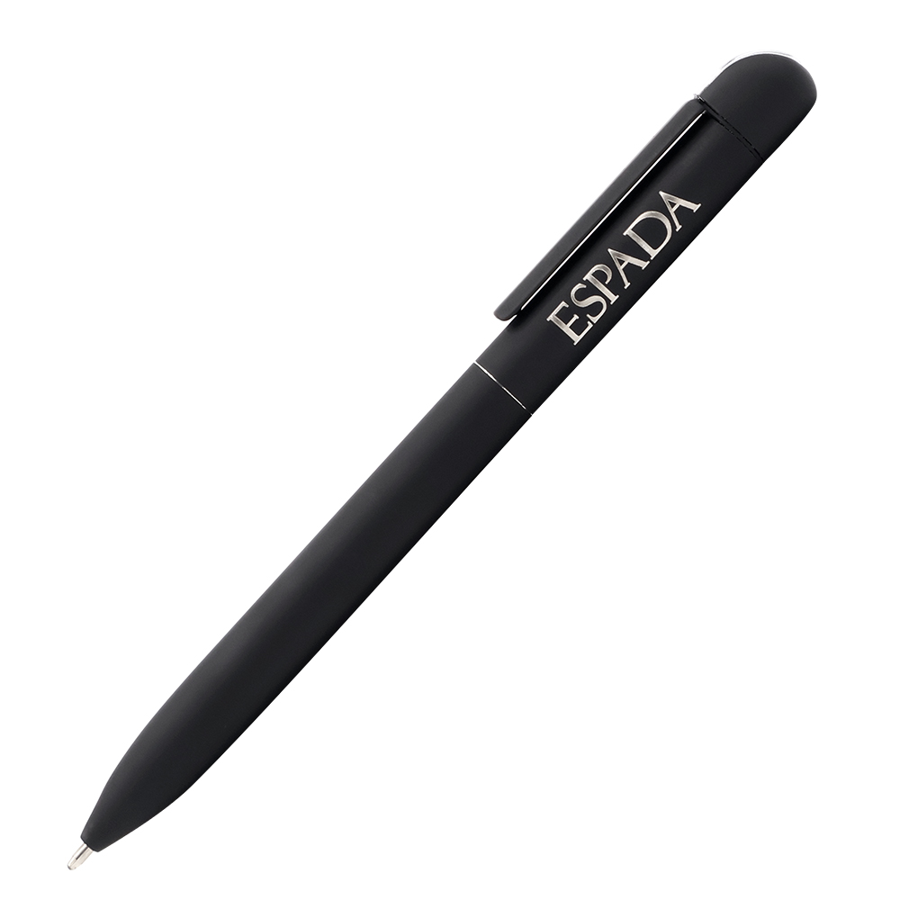 Элегантная минималистичная ручка Espada подойдёт всем, кто предпочитает современный дизайн и простоту в исполнении. В конструкции нет ничего лишнего, надёжный поворотный механизм и удобный клип, гармонирующий с корпусом. Качественный стержень с синими чернилами и толщиной письма в 1,0 мм. Цвет максимально приближен к PANTONE® — Black 7C- Виды нанесений: Гравировка CO2-А1, УФ-печать