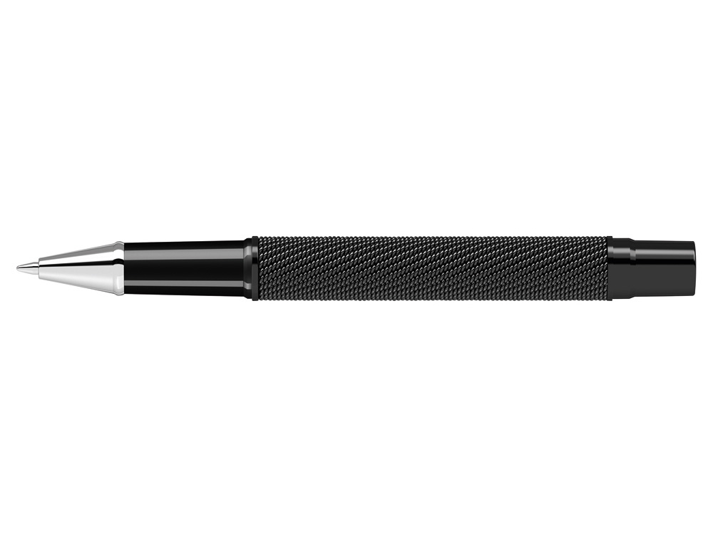 Металлический роллер, покрытый глянцевым лаком, с ремешком из настоящей сетки вокруг корпуса. -
