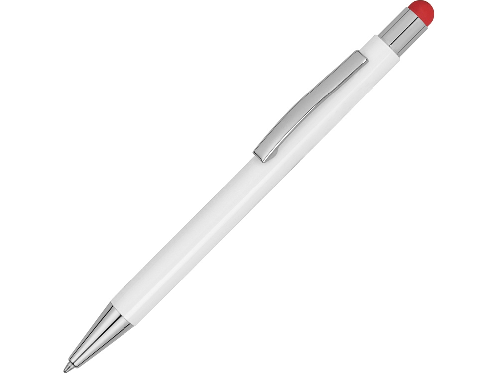 Металлическая шариковая ручка-стилус с нажимным механизмом. Под лакированным белым покрытием корпуса скрыт цветной зеркальный слой, раскрываемый в процессе гравировки. Зеркальный слой и стилус выполнены в едином цвете. -