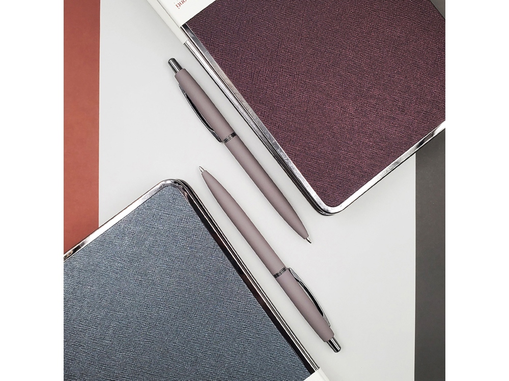 В ручке нет ничего лишнего, но она привлекает к себе внимание: изящна благодаря плавным линиям, эргономичному корпусу и приятна на ощупь, благодаря покрытию soft-touch. Контраст добавляют кольцо и клип из серебристого металла. Отличный бизнес-сувенир!