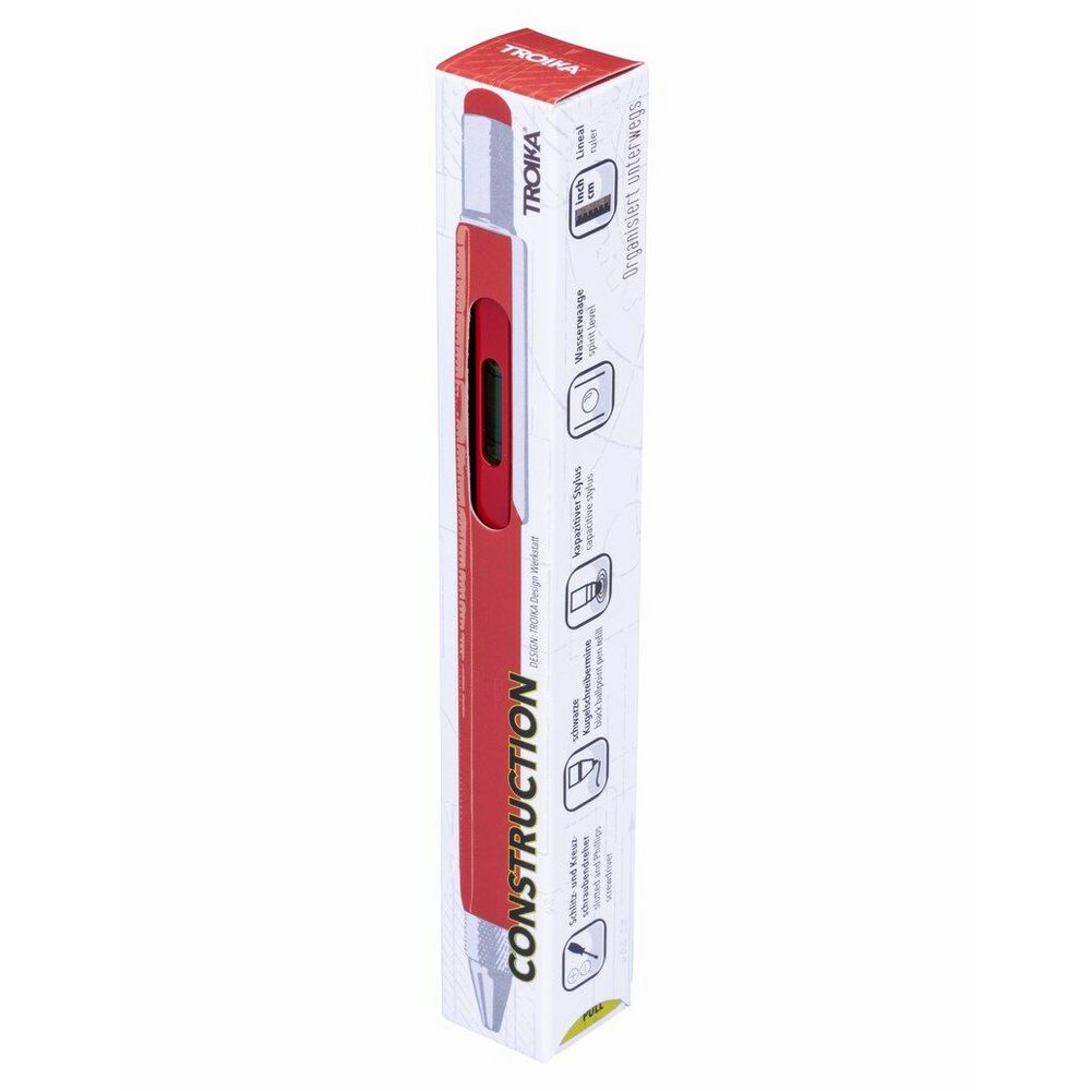 Ручка шариковая Construction, мультиинструмент, красная