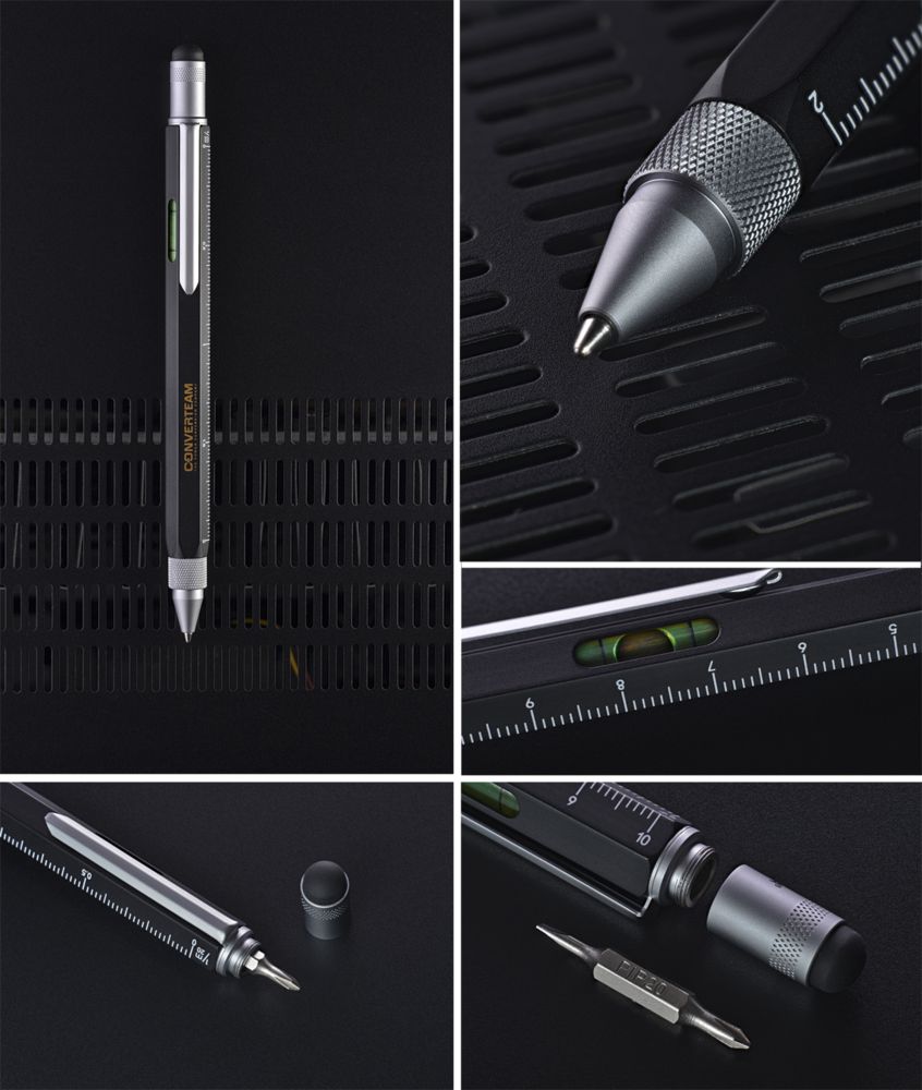 Разные метрические сетки на гранях позволяют быстро и легко перевести размеры с чертежей. Стилус упрощает работу со смартфоном или планшетом. Уровень и отвертки дают возможность проверить и подкорректировать результат инженерной работы прямо на месте. Реализации вашего проекта ничто не помешает!- Шариковая ручка с четырьмя метрическими линейками (1:20, 1:25, 1:50, 1:100).