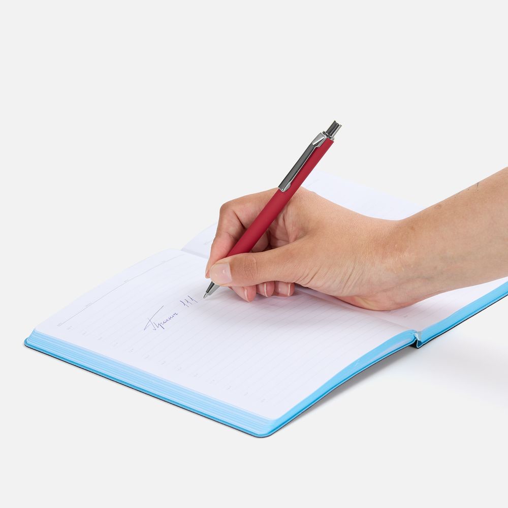 Шариковая ручка с покрытием софт-тач и хромированными деталями. Клип оригинальной формы.- Механизм ручки: нажимной.