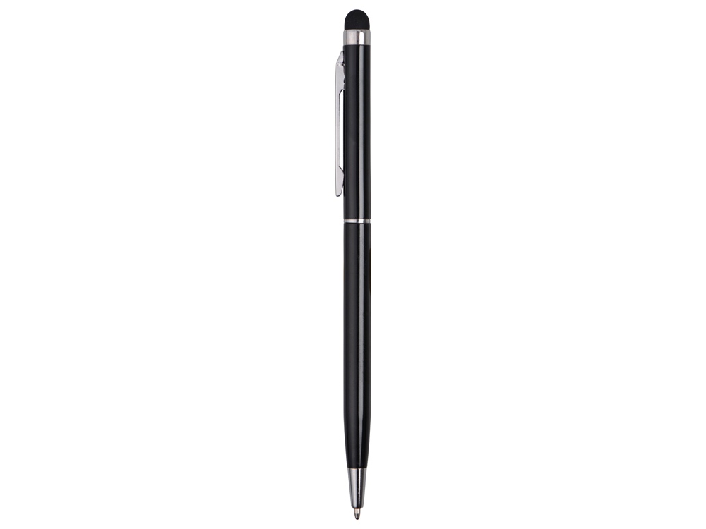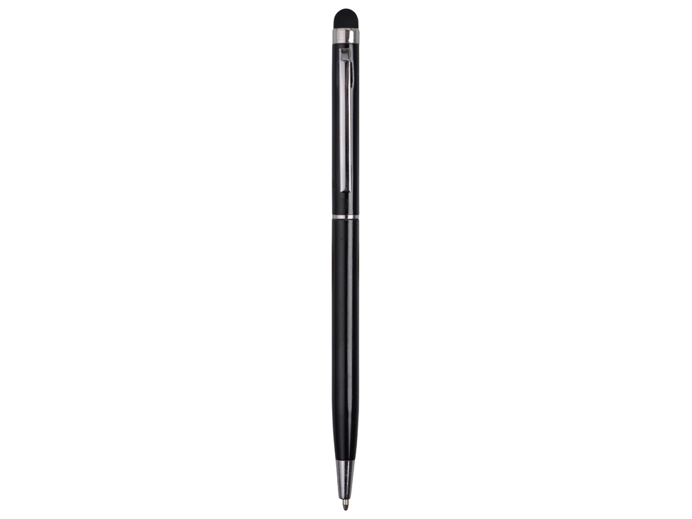 Тонкая металлическая шариковая ручка с поворотным механизмом и стилусом. Функциональный и стильный аксессуар станет отличным подарком. -