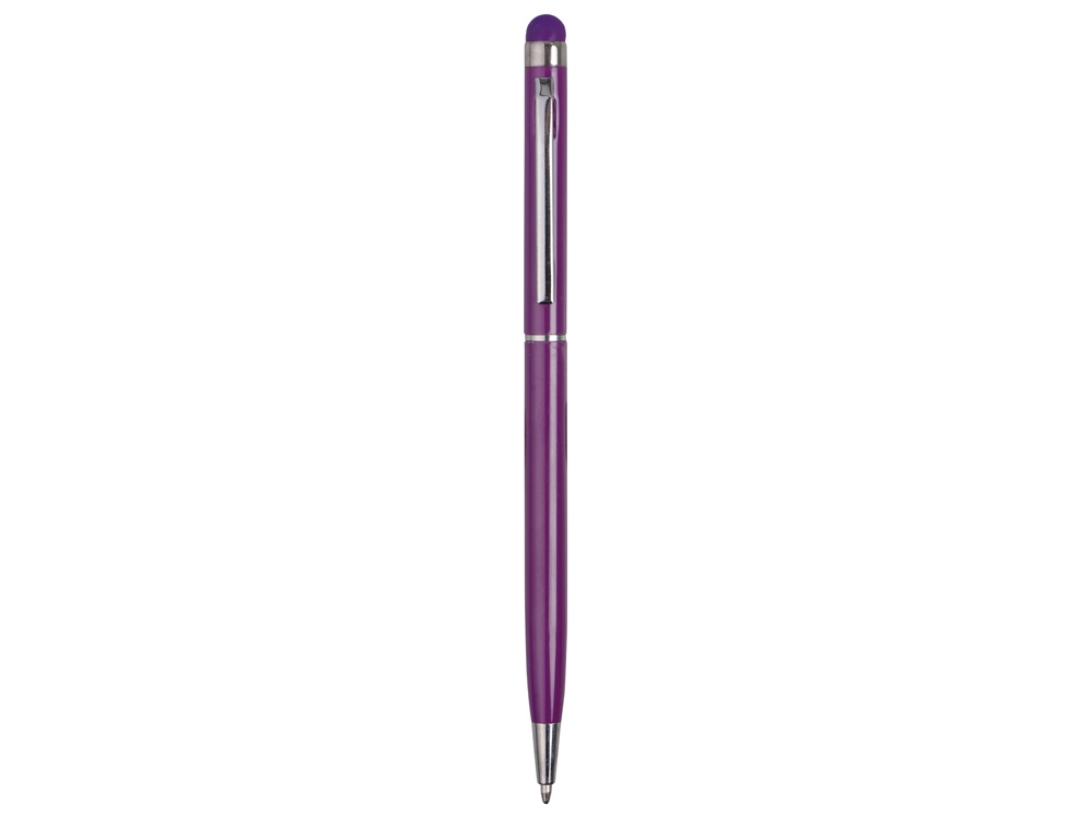 Тонкая металлическая шариковая ручка с поворотным механизмом и стилусом. Функциональный и стильный аксессуар станет отличным подарком. -