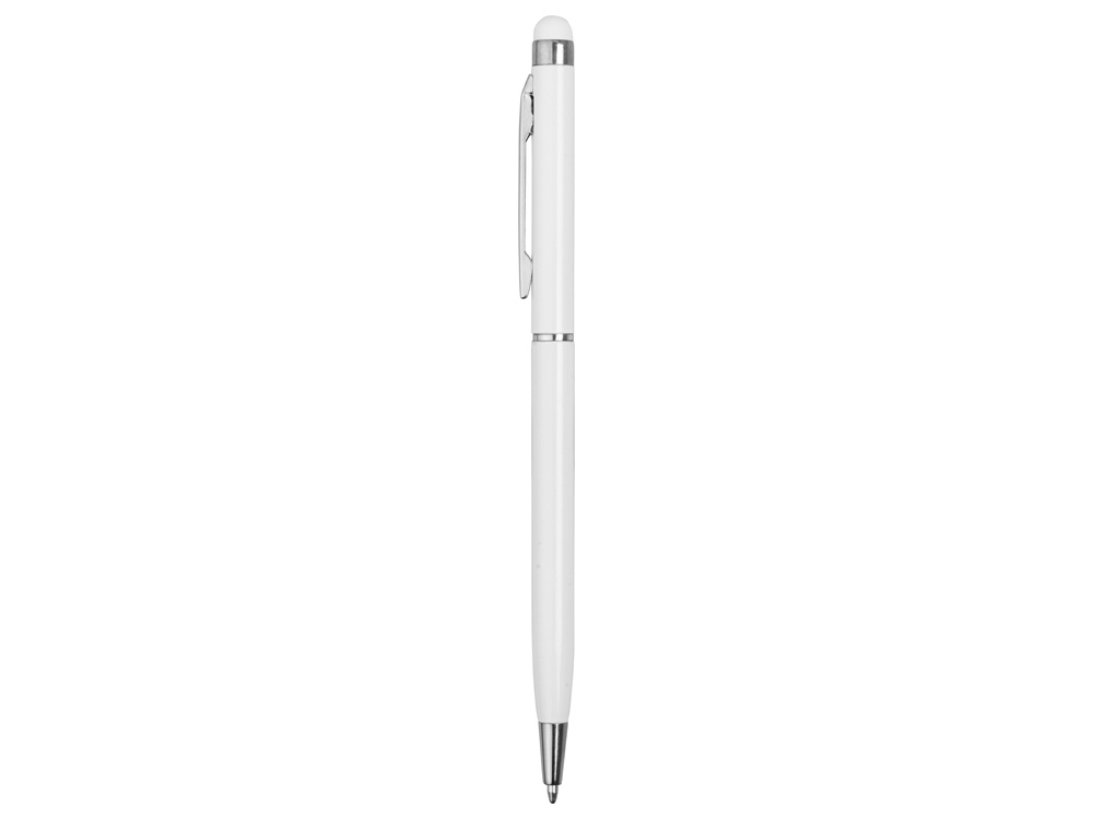 Тонкая металлическая шариковая ручка с поворотным механизмом и стилусом. Функциональный и стильный аксессуар станет отличным подарком. -