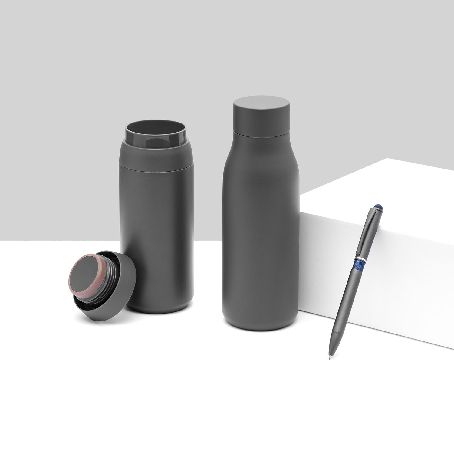 Корпус: алюминий, двухслойное покрытие: базовый цвет (вскрывается при гравировке) - синий, верхний цвет - серый камень