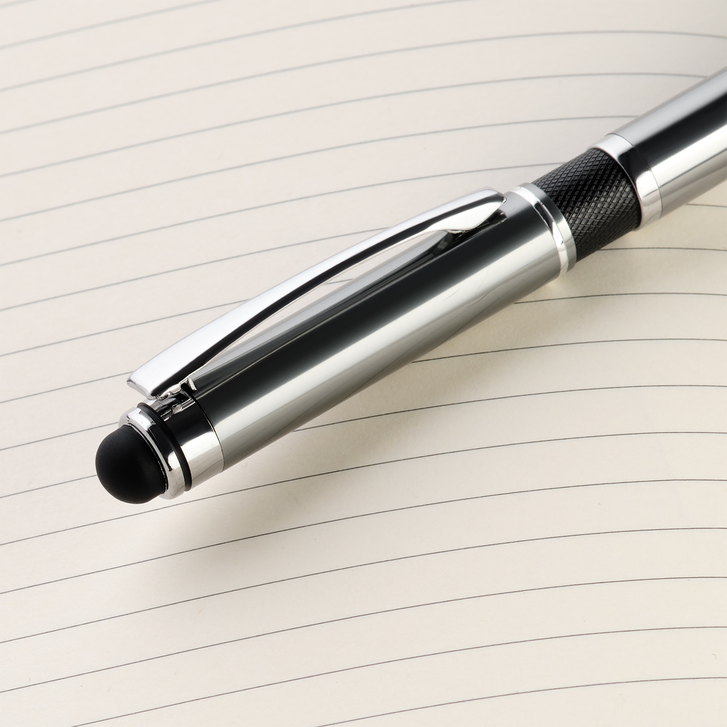 Силиконовый стилус на торце для работы с сенсорными экранами.