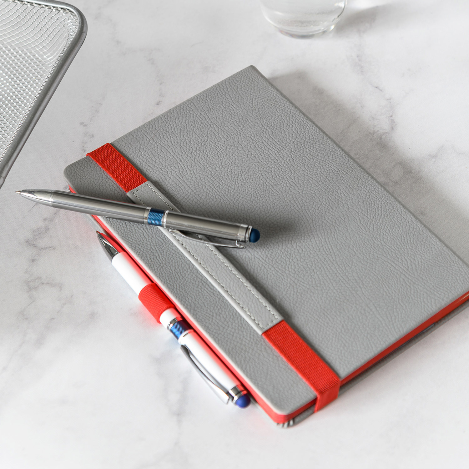 Классическая ручка цвета металлик с цветными деталями. Оснащена стилусом для работы с сенсорными экранами.